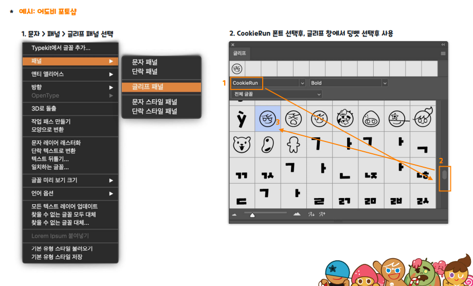 쿠키런 글꼴은 귀여우면서도 도전적인 쿠키런만의 아이덴티티를 담은 글꼴입니다.