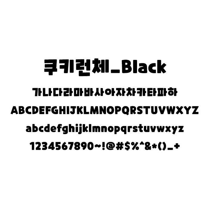라틴 알파벳과 한글을 지원하는 쿠키런 글꼴은 게임, 캐릭터, 광고 등 커뮤니케이션 전반에 사용됩니다.